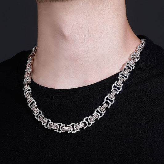 The Miami Cuban is arguably the most iconic style in hip-hop jewelry. It features round, bold, and closely interlocking links that lay flat against the chest. When covered in diamonds, a Miami Cuban link provides a massive surface area for maximum shine. They are durable, heavy, and command immediate respect. You will often see these available in thick widths, ranging from 10mm up to a massive 25mm.